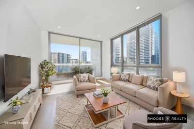 Elegant two-bedroom apartment is situated in a "Phoenix" complex at Rhodes, offers quality inclusions and appointments. This light filled residence with idyllic North/East aspect has parkland and dynamic district vistas.