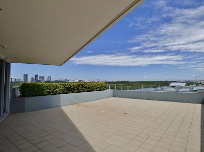 Boasting perhaps the best balcony/terrace at Rhodes Waterside this spectacular 3 bedroom apartment located high up on the 6th floor of the Huxley South building is very unique and an absolute must see property.