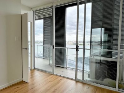 - Open plan tiled living and dining flows onto private balcony with sweeping views of the water & Olympic Park