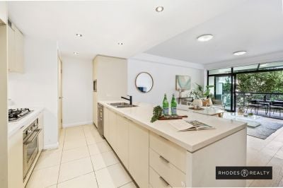 Situated in the sought-after "Village Quay" by Billbergia, this stunning contemporary apartment offers a spacious and stylish layout, perfect for comfortable, low-maintenance living. Just moments from Rhodes' bustling shopping, dining, and transport hubs, this home combines urban convenience with a serene residential setting.